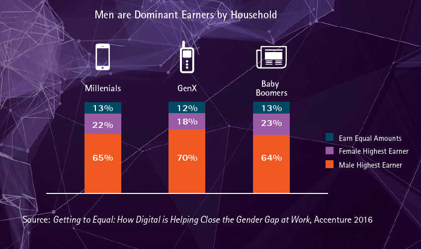 From the time I could talk, I can remember a constant playground battle to always measure up or be better than the boys: “whatever boys can do, we can do too / better.” Here I sit 20 years later and the battle wages on as I find myself on an even larger playground and men are still, by far, the dominant earners by household for all three generations. What I did find promising, was that 70% of South African millennial and gen X women surveyed, aspire to be in leadership positions – this is an indication of the opportunities being afforded to girls/women and their realization that they have the potential to be more.